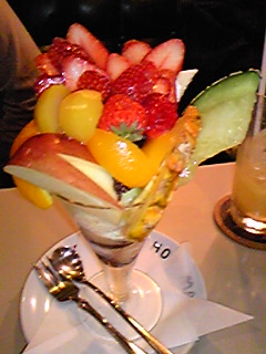 果物たっぷりで、下にはあんこ、抹茶アイス、バニラアイスが入っていてとても美味しかったです。